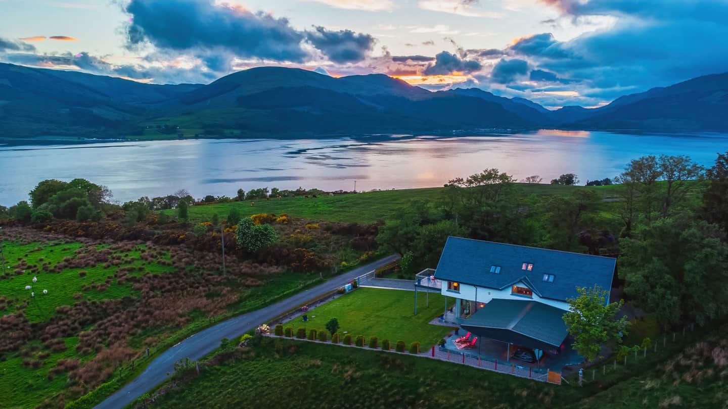 Very private, fabulously luxurious, and stylish pet-friendly property with a hot tub situated in an elevated position with stunning views over Loch Long and the Firth of Clyde (Argyllshire, Scotland).